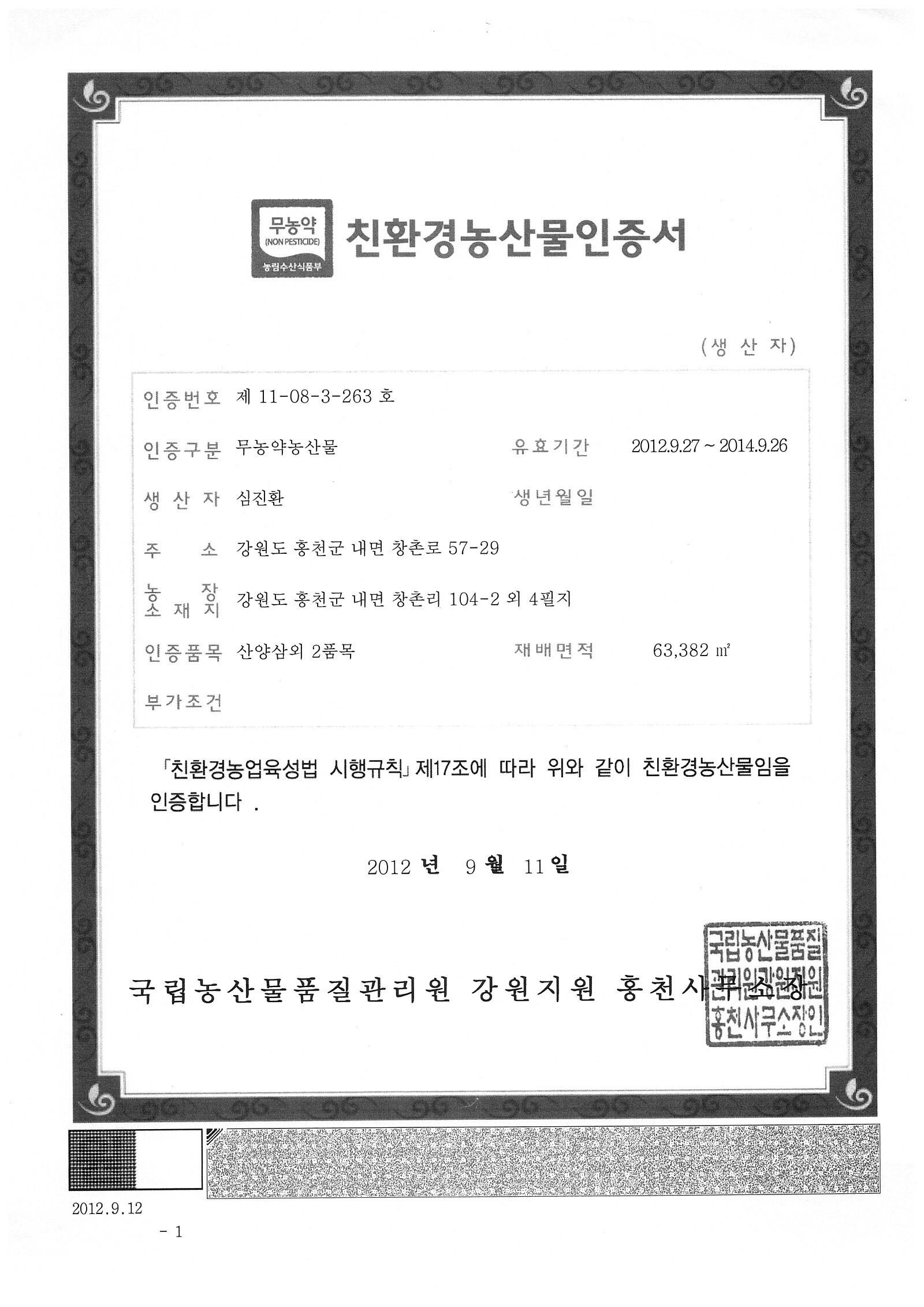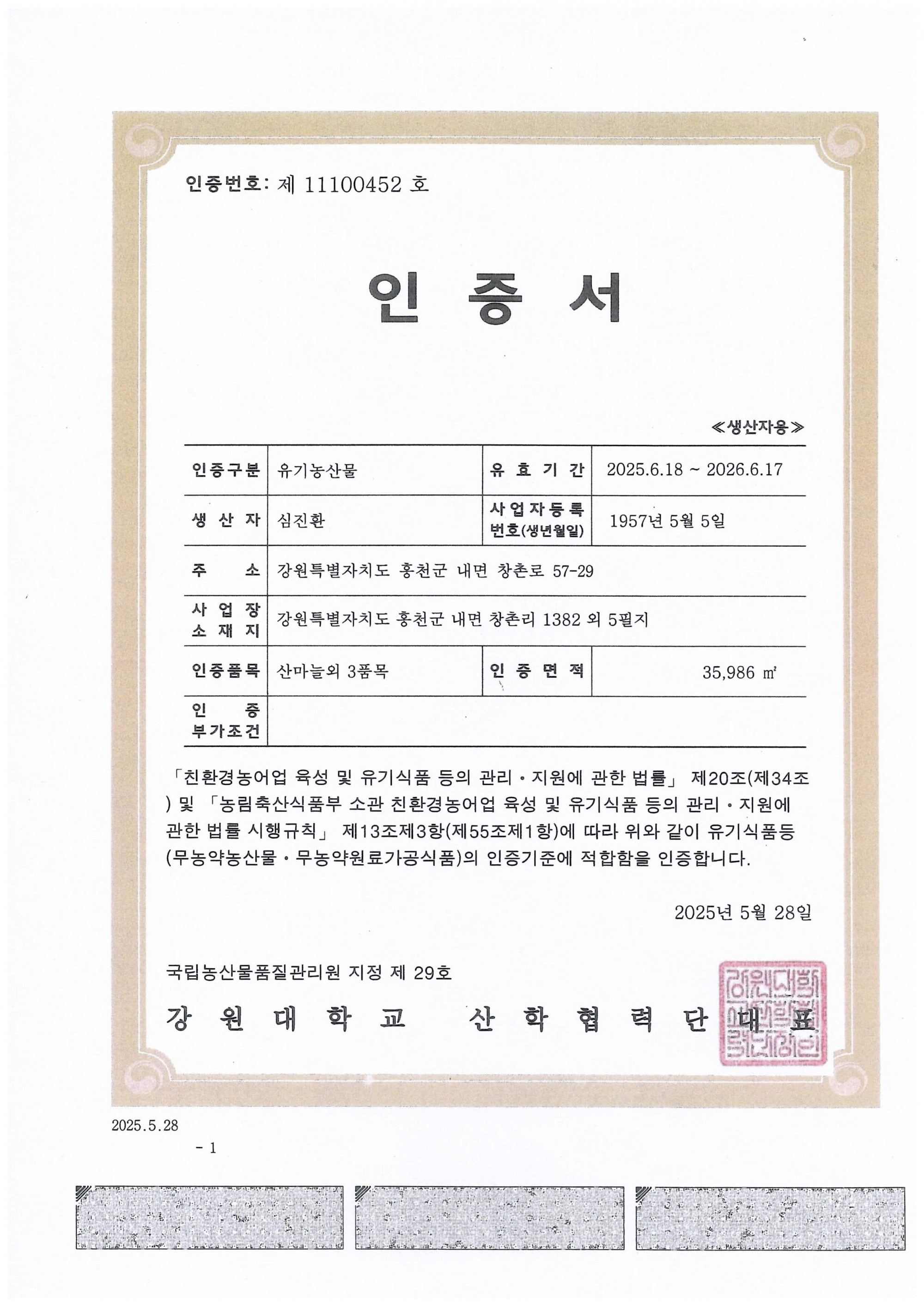 유기농인증을 받아 재배하고 있습니다.